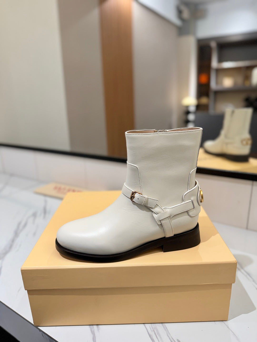 VALENTINO 25S PATTIE ANKLE BOOTS IN WHITE CALFSKIN WITH GOLD HARDWARE
