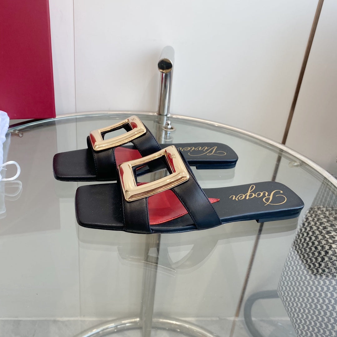 VIV' BY THE SEA LOVE METAL MULES IN BLACK CALFSKIN GOLD BUCKLE