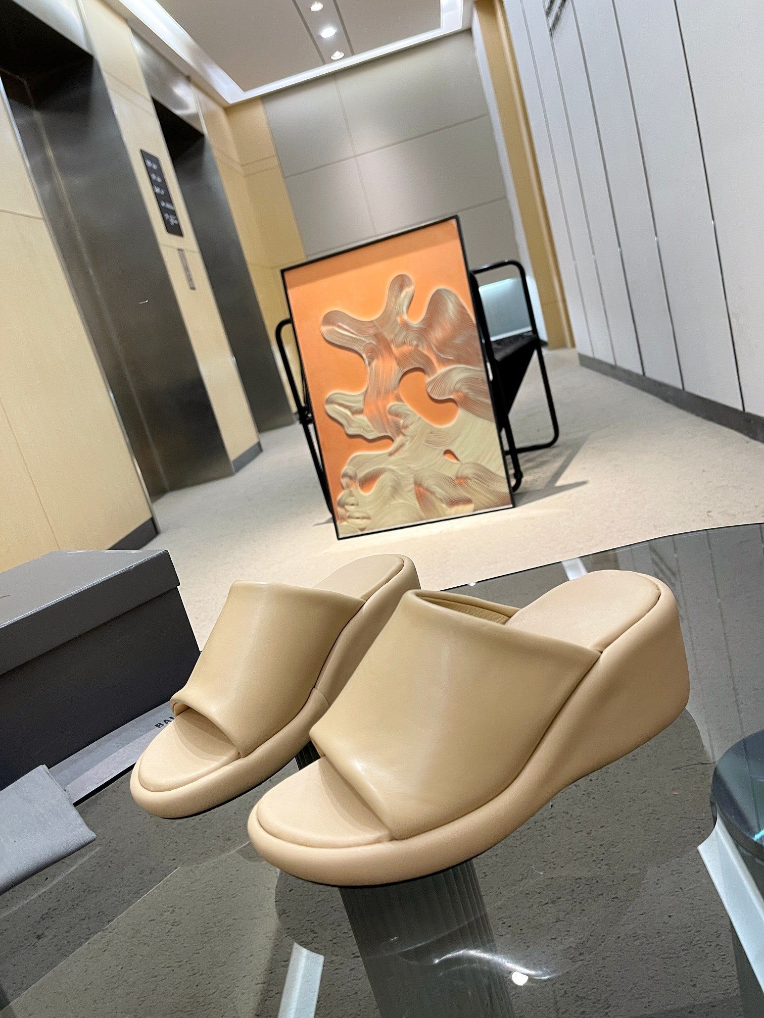 WEDGE SANDALS IN BEIGE SOFT LAMBSKIN