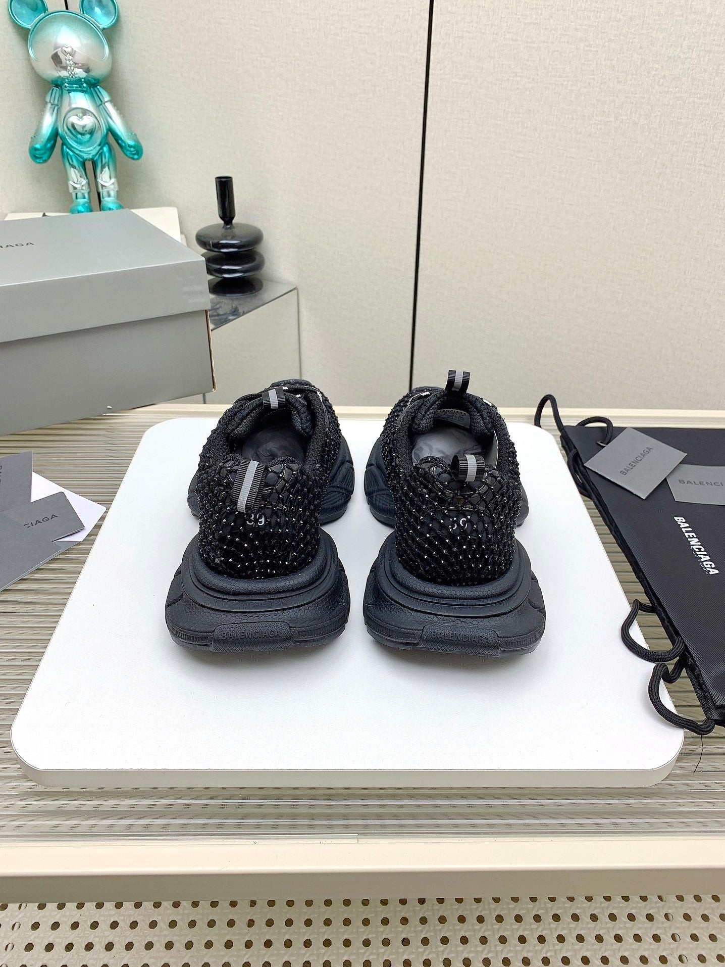 XL FISHNET SNEAKER IN BLACK MESH. POLYURETHANE. POLYESTER WITH RHINESTONES